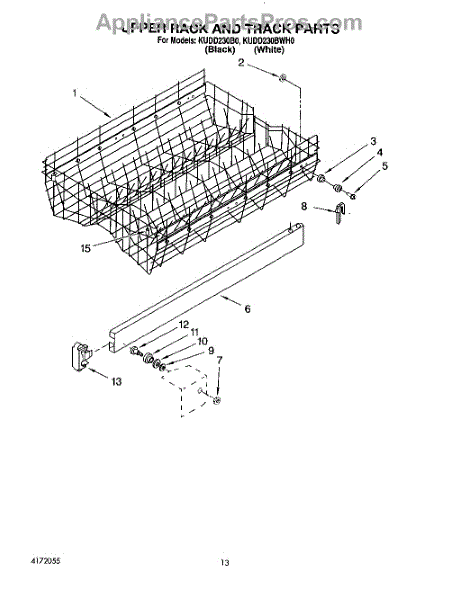 Parts for Kitchenaid KUDD230B0: 10 - Upper Rack And Track Parts