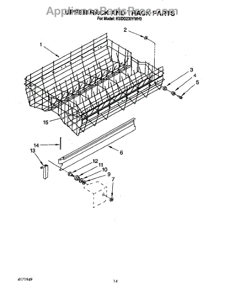 Parts for Kitchenaid KUDD230YWH0: 10 - Upper Rack And Track Parts