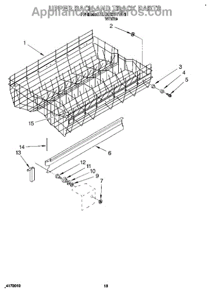 Parts for Kitchenaid KUDD230YWH1: 10 - Upper Rack And Track Parts