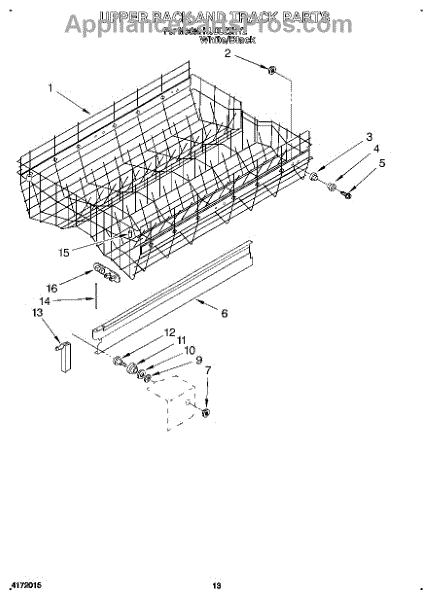 This upper rack roller guides the dishwasher's top rack along its track. Replacing a worn or broken wheel restores smooth sliding and proper alignment so you can load and unload without sticking, derailing, or grinding.