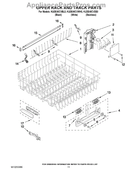 The Upper Dishrack Rail is an OEM replacement part for Whirlpool dishwashers. It guides upper racks in and out for easy access to dishes.