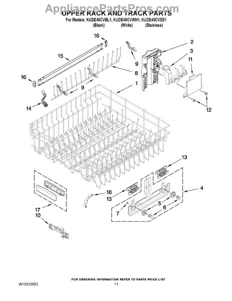 The Upper Dishrack Rail is an OEM replacement part for Whirlpool dishwashers. It guides upper racks in and out for easy access to dishes.