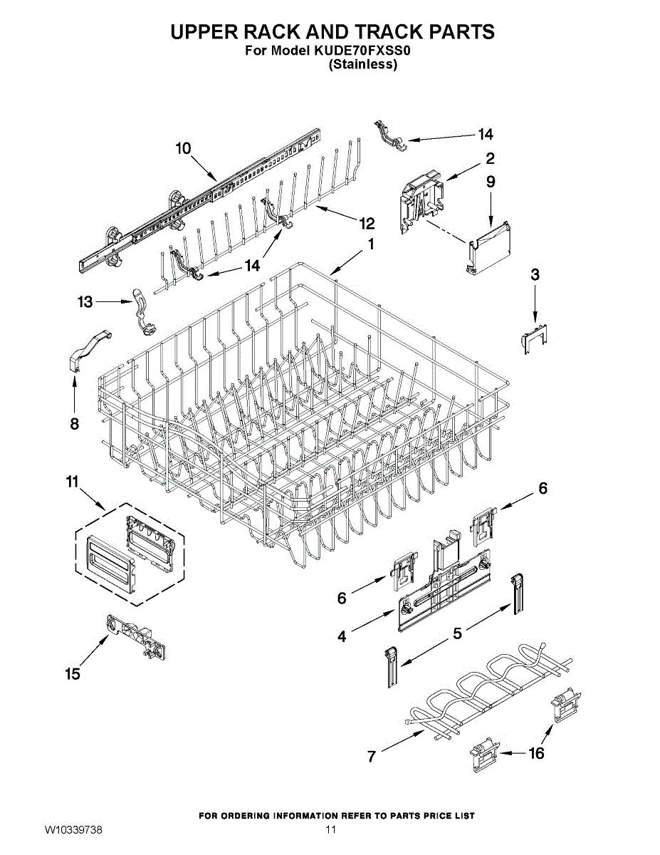 Replacement upper dishrack for dishwashers. Holds dishes and glasses in the top position. Order if your original rack is rusted, cracked, or broken.