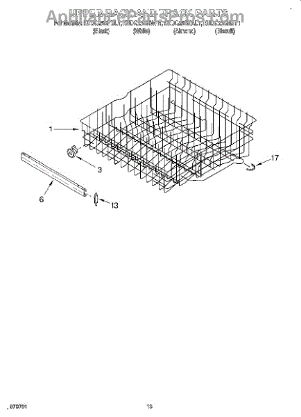 Parts for Kitchenaid KUDG25SHBL1: 10 - Upper Rack And Track Parts