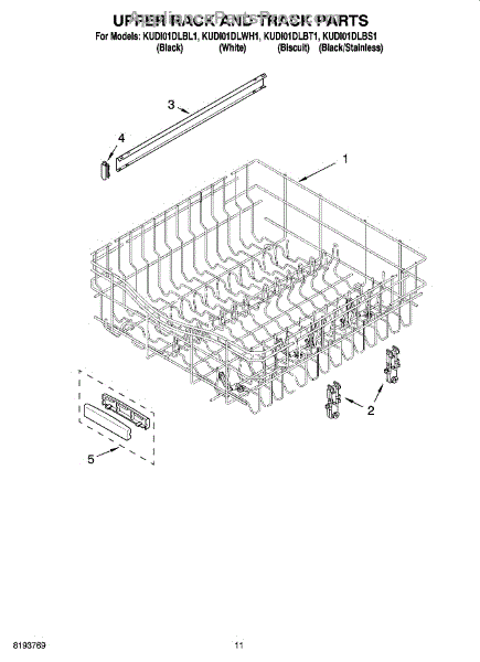 Parts for Kitchenaid KUDI01DLBL1: 09 - Upper Rack And Track Parts