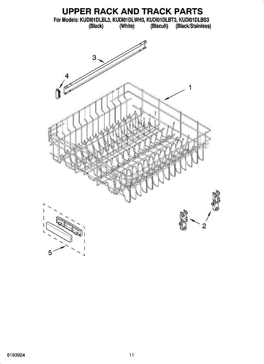 Parts for Kitchenaid KUDI01DLBL3: 09 - Upper Rack And Track Parts