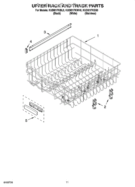 Replace your dishwasher's upper dishrack if it's cracked, rusted, or has damaged coating. This top shelf holds plates and bowls securely during wash cycles.