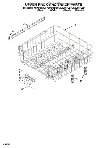 Parts for Kitchenaid KUDI01FLSS1: 09 - Upper Rack And Track Parts