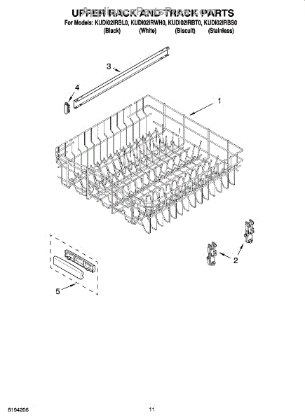 Replacement upper dishrack for dishwashers. Holds dishes, glasses, and utensils during wash cycles. Replace if rusted, cracked, or broken tines damage items.