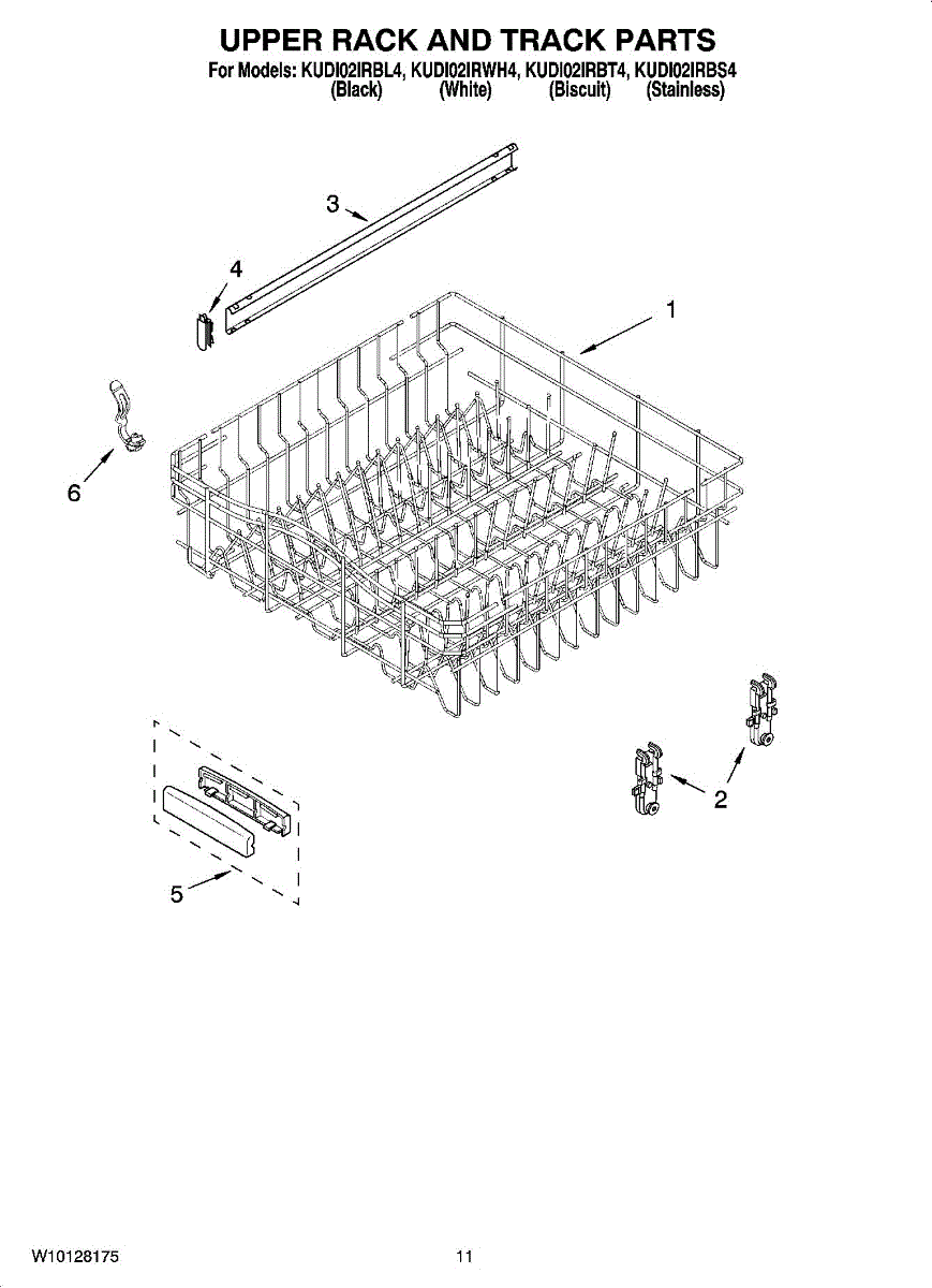 Parts for Kitchenaid KUDI02IRBL4: 09 - Upper Rack And Track Parts