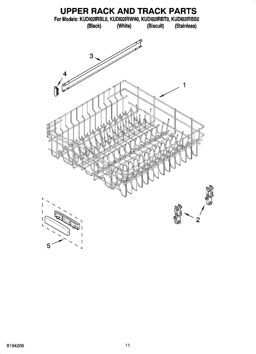 Parts for Kitchenaid KUDI02IRBS0: 09 - Upper Rack And Track Parts