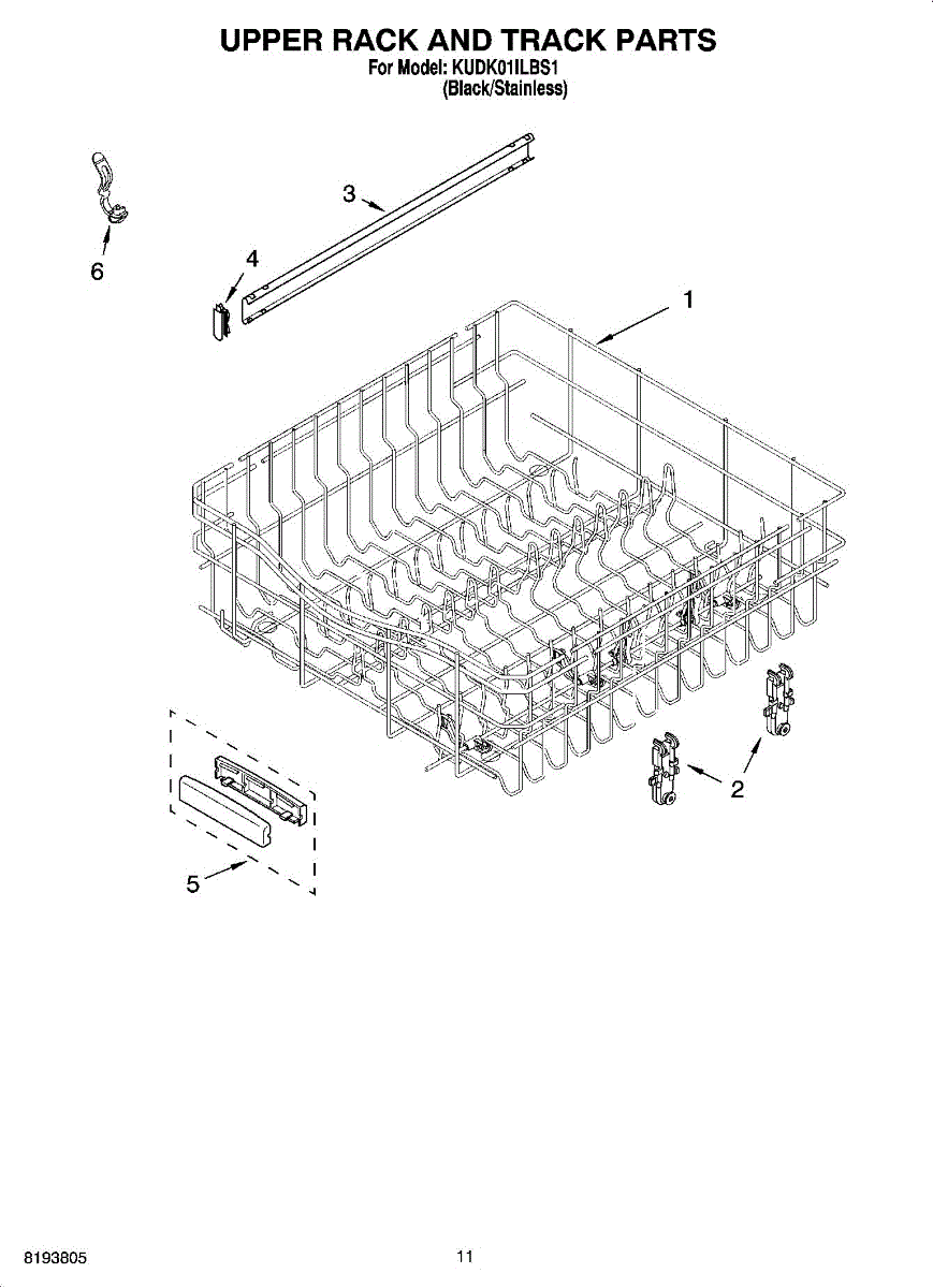 Replace your dishwasher's upper dishrack if it's cracked, rusted, or has damaged coating. This top shelf holds plates and bowls securely during wash cycles.