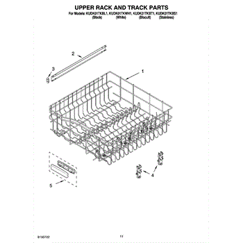 Replace your dishwasher's upper dishrack if it's cracked, rusted, or has damaged coating. This top shelf holds plates and bowls securely during wash cycles.