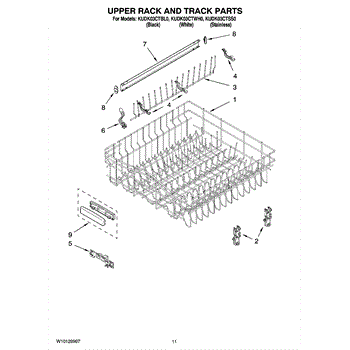 The Upper Dish Rack is an OEM replacement part for Whirlpool dishwashers. Located on the upper level inside the tub, it provides an area for washing smaller dishes, utensils, and glasses.