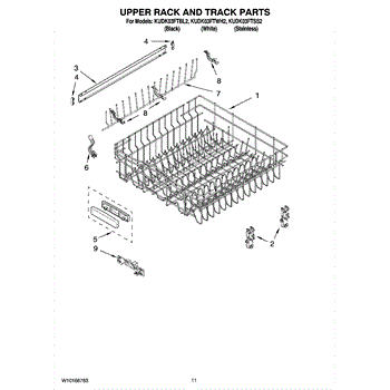 The Upper Dish Rack is an OEM replacement part for Whirlpool dishwashers. Located on the upper level inside the tub, it provides an area for washing smaller dishes, utensils, and glasses.