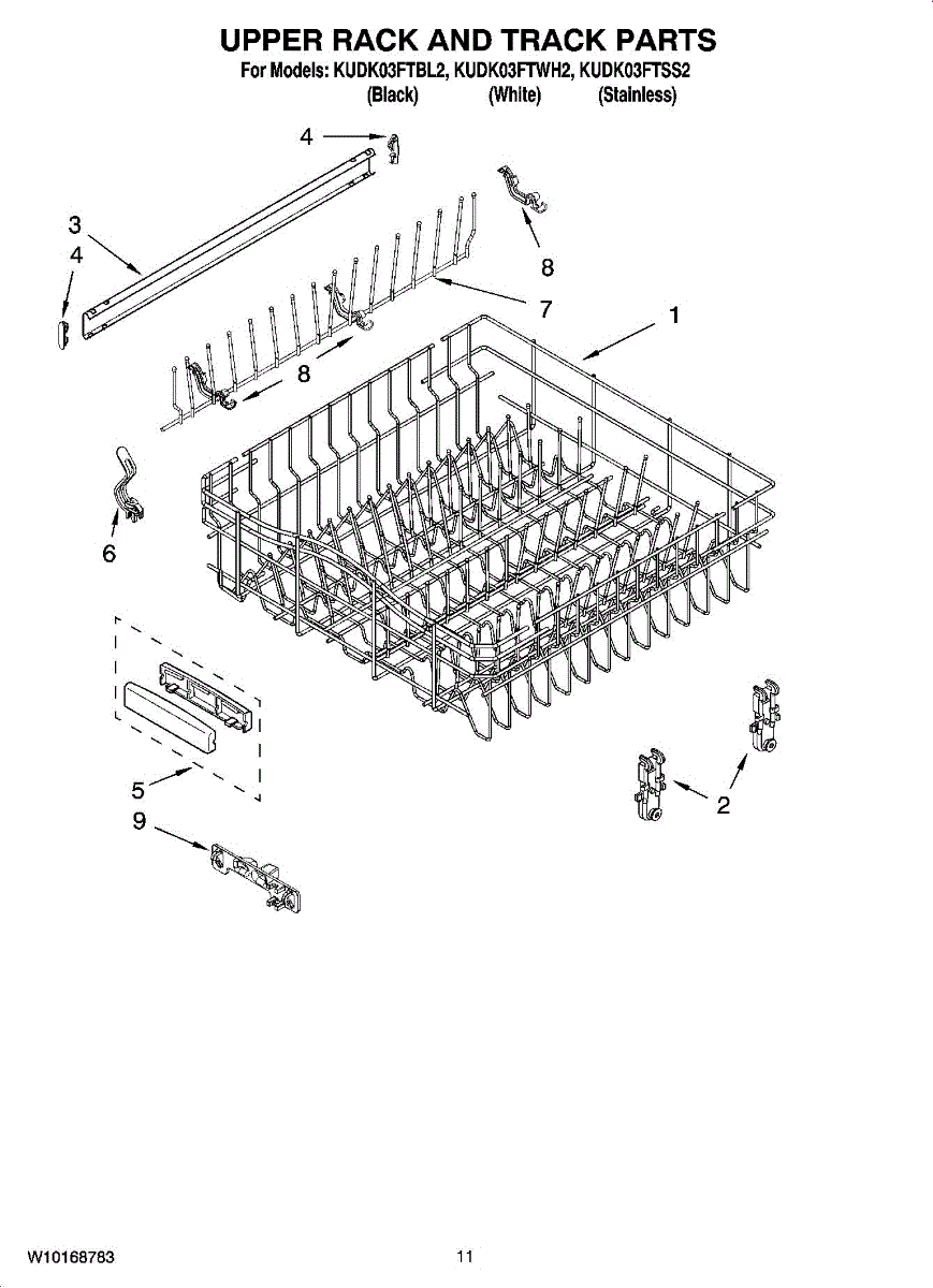 Parts for Kitchenaid KUDK03FTBL2: 09 - Upper Rack And Track Parts