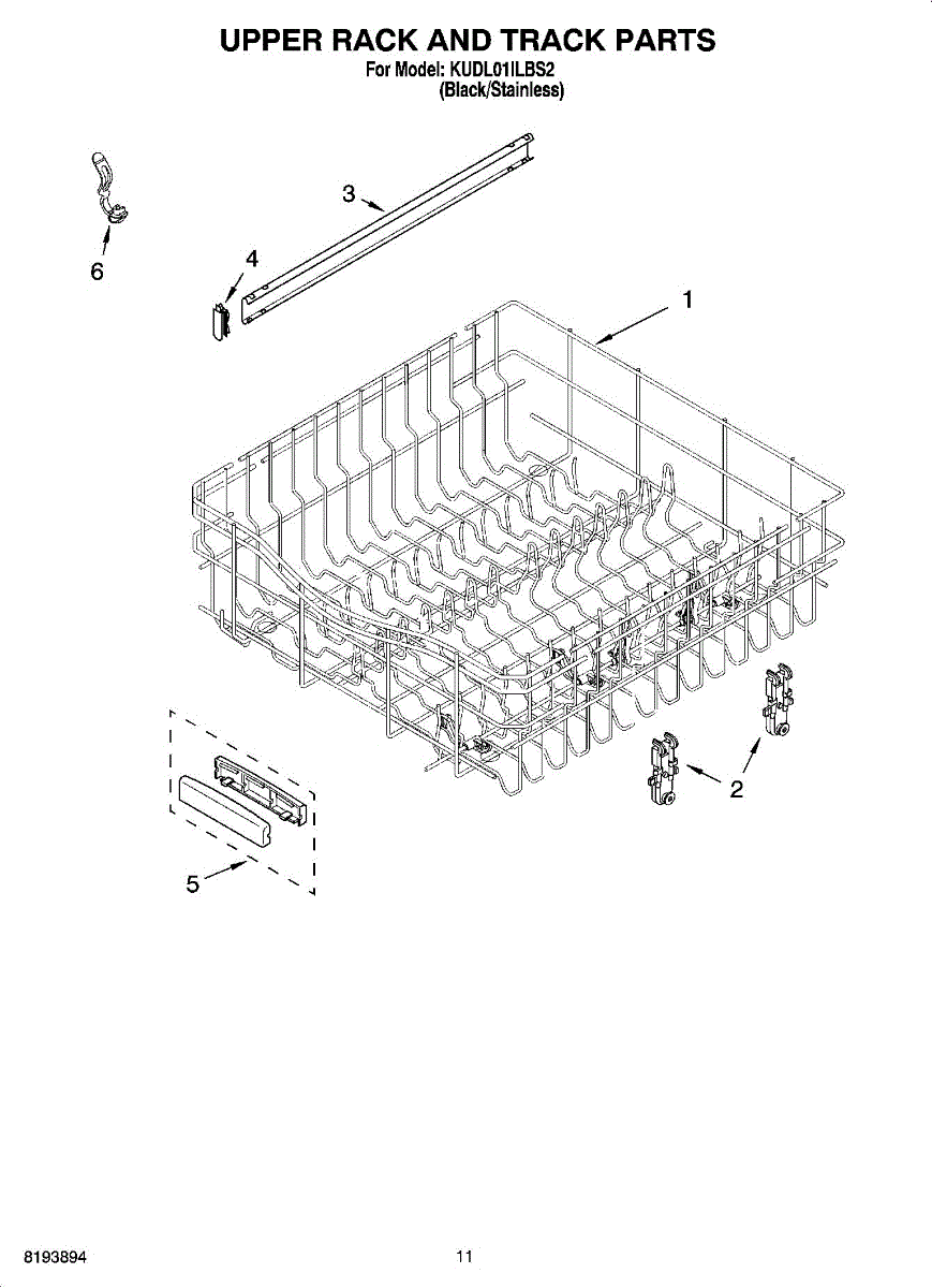 Replace your dishwasher's upper dishrack if it's cracked, rusted, or has damaged coating. This top shelf holds plates and bowls securely during wash cycles.