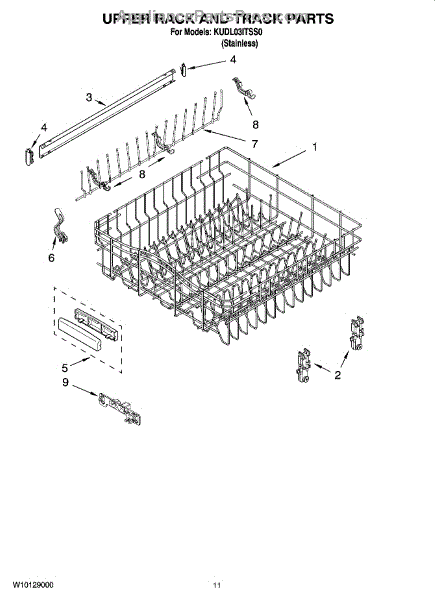 Parts for Kitchenaid KUDL03ITSS0: 09 - Upper Rack And Track Parts