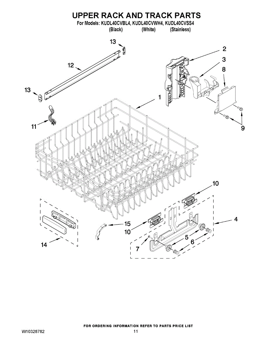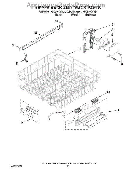 Replacement upper dishrack for dishwashers. Holds dishes, glasses, and utensils during wash cycles. Replace if rusted, cracked, or broken tines damage items.