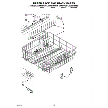 This genuine replacement part is an upper dishrack. The upper dishrack is the top shelf of a dishwasher that holds plates, bowls, and utensils. Over time through continuous use, this upper rack may become damaged, making it difficult to secure dishes during a wash cycle. If the dishrack is visibly damaged or no longer opening and shutting properly, it will need to be replaced. Thankfully, replacing this dishrack is a relatively simple process.To remove the old dishrack, simply pull it out and lift the wheels from its track. Set it off the side, and lift the new dishrack. Slide it into its track and make sure it is locked in. If it is gliding in and out smoothly, it has been installed properly.This genuine replacement part is compatible with Whirlpool, Maytag, KitchenAid, Jenn-Air, Amana, Magic Chef, Admiral, Norge, Roper, and Sears/Kenmore brand dishwashers.