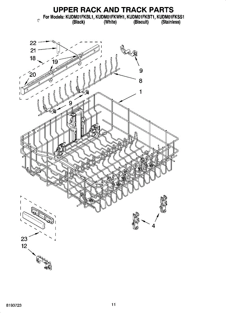 Replace your dishwasher's upper dishrack if it's cracked, rusted, or has damaged coating. This top shelf holds plates and bowls securely during wash cycles.