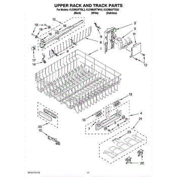 Parts for Kitchenaid KUDM03FTBL2: 09 - Upper Rack And Track Parts