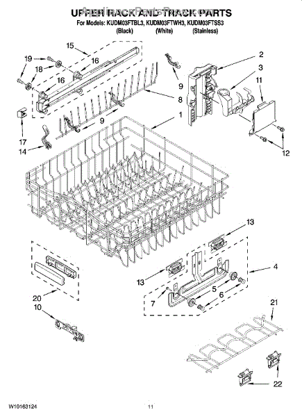 Parts for Kitchenaid KUDM03FTBL3: 09 - Upper Rack And Track Parts