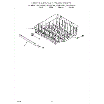 Parts for Kitchenaid KUDM25SHBT0: 10 - Upper Rack And Track Parts