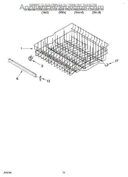 This genuine OEM part is a refrigerator upper dishrack. The upper dishrack is the tray on which dishes are placed on the top shelf of a dishwasher. If the dishrack is no longer sliding on its tracks, or is not staying in place during the wash cycle, it might need to be replaced. Luckily this is a very simple repair.To replace the upper dishrack, simply pull out the old dish rack and lift it up out of its tracks. Once removed from the dishwasher, take the new dishrack and gently slide it into place. Make sure it is placed correctly and that it is running smoothly on its tracks.This replacement part is sold individually and is compatible with Whirlpool, Maytag, KitchenAid, Jenn-Air, Amana, Magic Chef, Admiral, Norge, Roper, and Sears/Kenmore brand dishwashers.