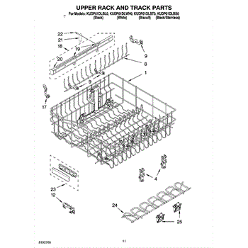 Parts for Kitchenaid KUDP01DLBL0: 09 - Upper Rack And Track Parts