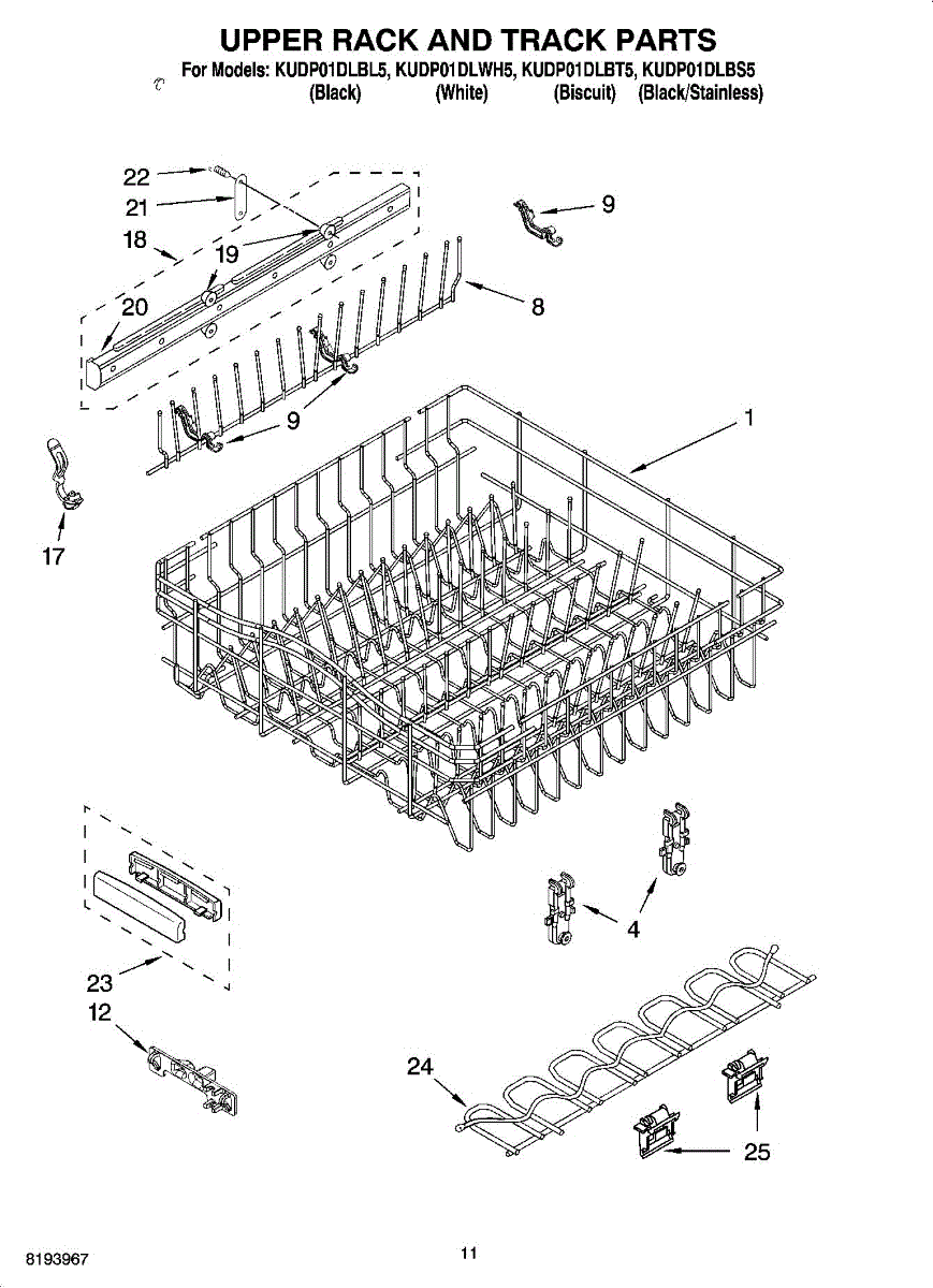 Parts for Kitchenaid KUDP01DLBL5: 09 - Upper Rack And Track Parts