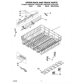 Parts for Kitchenaid KUDP01DLBL7: 09 - Upper Rack And Track Parts