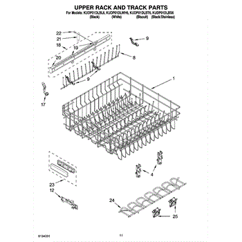 Parts for Kitchenaid KUDP01DLBS6: 09 - Upper Rack And Track Parts