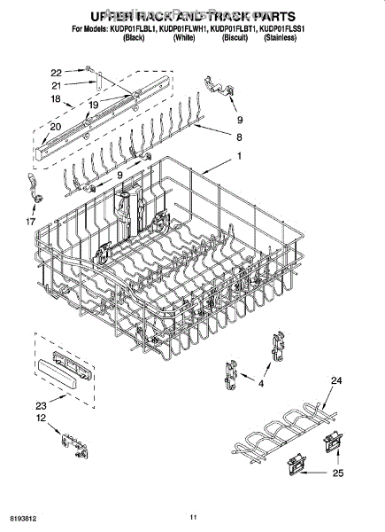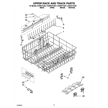 Parts for Kitchenaid KUDP01FLSS1: 09 - Upper Rack And Track Parts