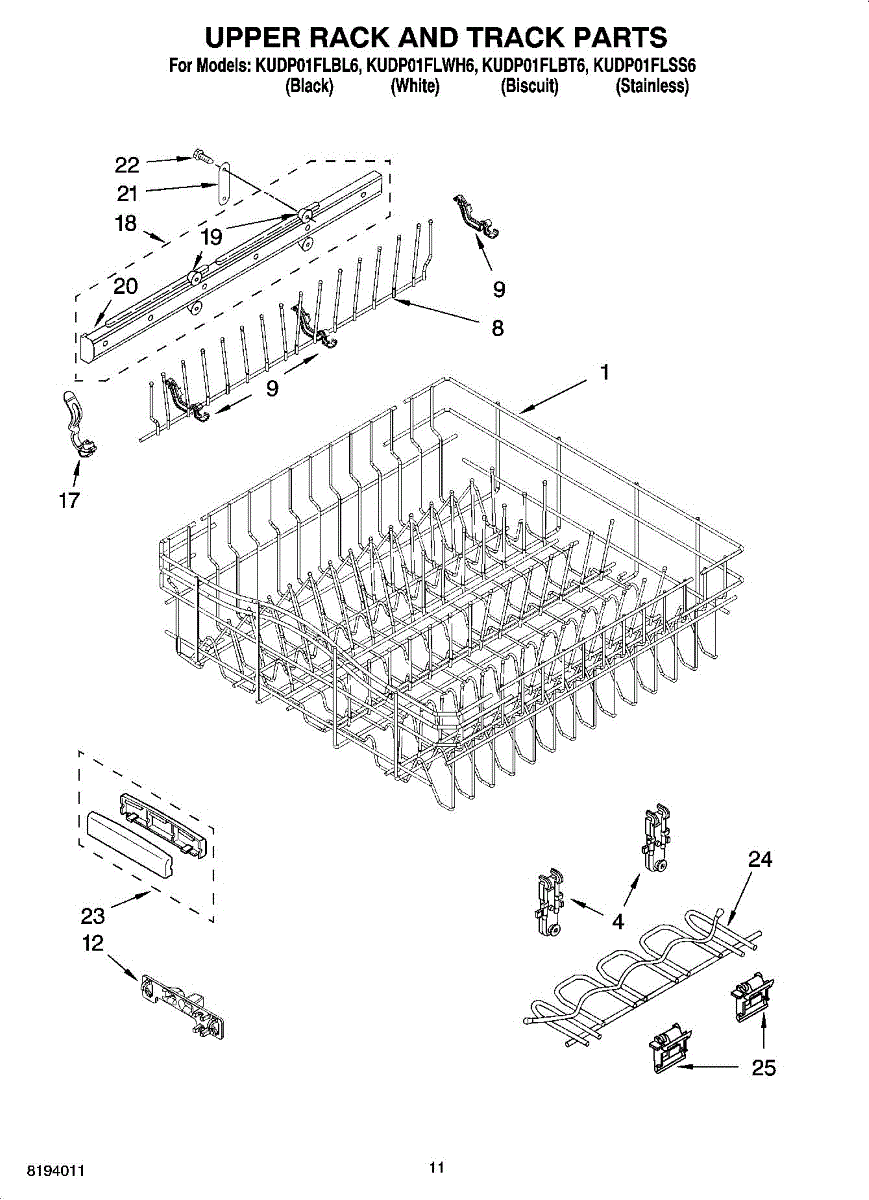 Parts for Kitchenaid KUDP01FLSS6: 09 - Upper Rack And Track Parts