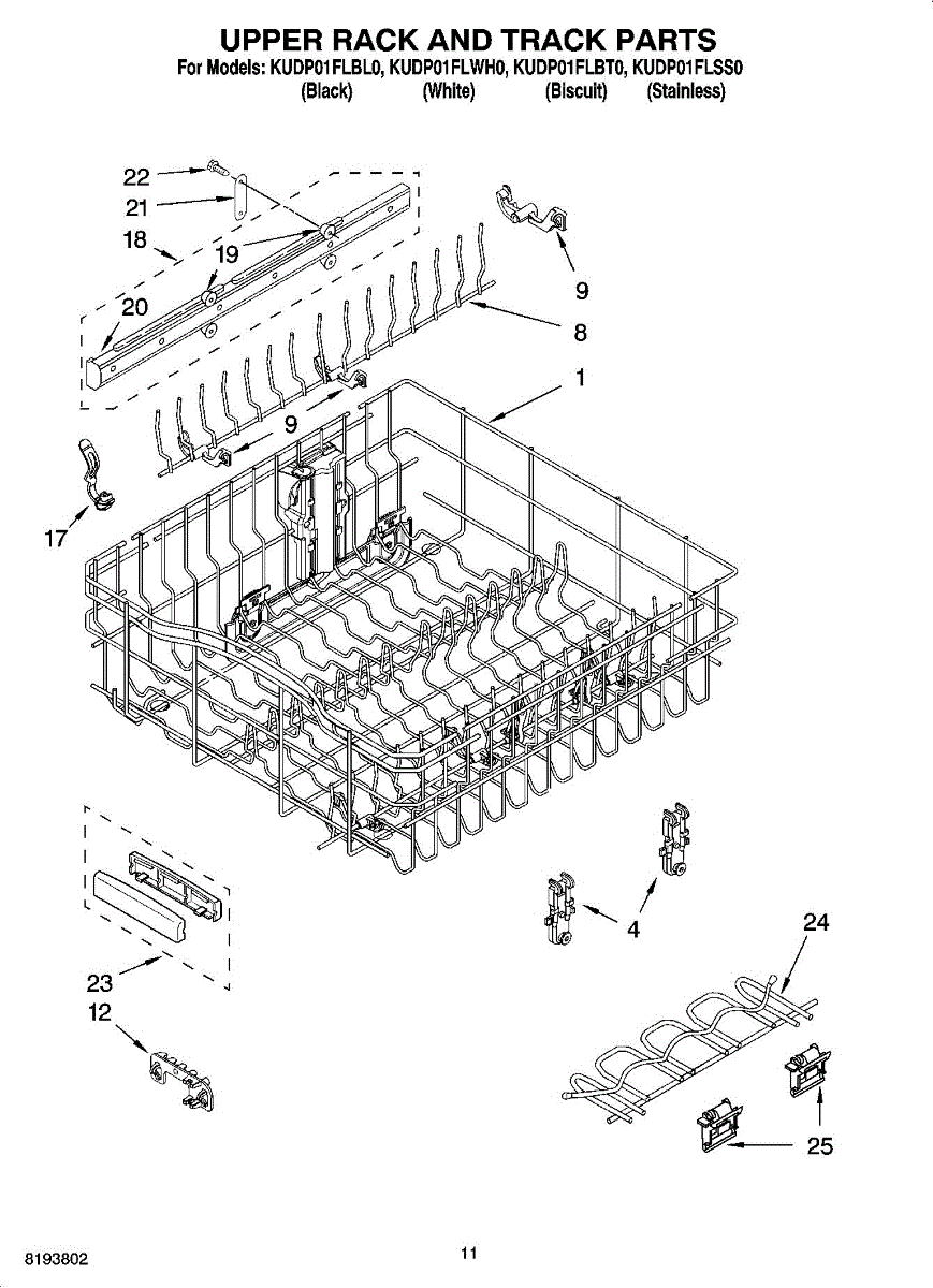 Replace your dishwasher's upper dishrack if it's cracked, rusted, or has damaged coating. This top shelf holds plates and bowls securely during wash cycles.