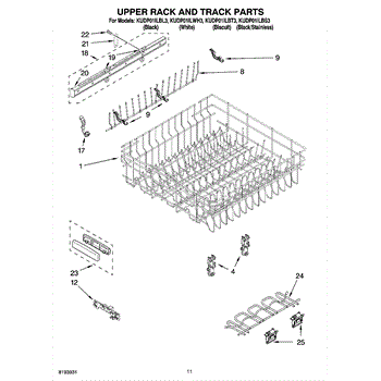 The Upper Dish Rack is an OEM replacement part for Whirlpool dishwashers. Located on the upper level inside the tub, it provides an area for washing smaller dishes, utensils, and glasses.