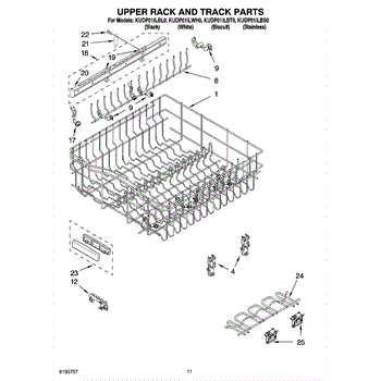 This genuine replacement part is an upper dishrack. The upper dishrack is the top shelf of a dishwasher that holds plates, bowls, and utensils. Over time through continuous use, this upper rack may become damaged, making it difficult to secure dishes during a wash cycle. If the dishrack is visibly damaged or no longer opening and shutting properly, it will need to be replaced. Thankfully, replacing this dishrack is a relatively simple process.To remove the old dishrack, simply pull it out and lift the wheels from its track. Set it off the side, and lift the new dishrack. Slide it into its track and make sure it is locked in. If it is gliding in and out smoothly, it has been installed properly.This genuine replacement part is compatible with Whirlpool, Maytag, KitchenAid, Jenn-Air, Amana, Magic Chef, Admiral, Norge, Roper, and Sears/Kenmore brand dishwashers.