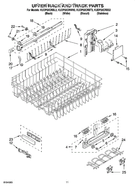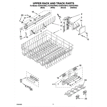 Parts for Kitchenaid KUDP02CRBS3: 09 - Upper Rack And Track Parts