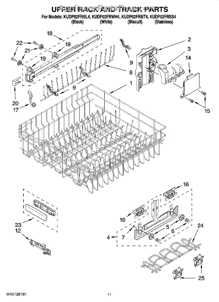 Parts for Kitchenaid KUDP02FRBL4: 09 - Upper Rack And Track Parts