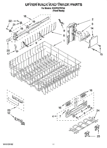 Parts for Kitchenaid KUDP02FSPA4: 09 - Upper Rack And Track Parts