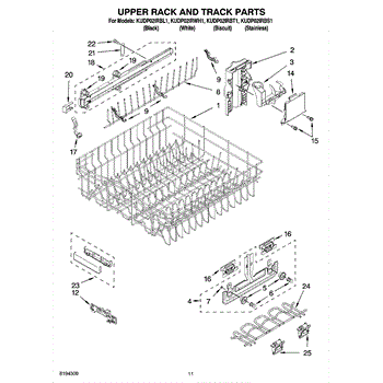Parts for Kitchenaid KUDP02IRBL1: 09 - Upper Rack And Track Parts