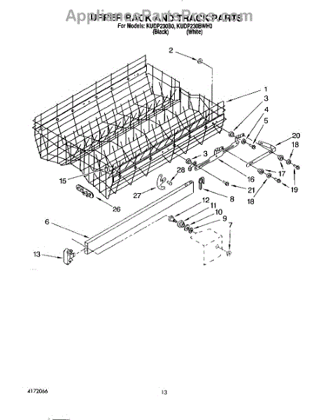 Parts for Kitchenaid KUDP230BWH0: 10 - Upper Rack And Track Parts