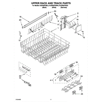 Upper dish rack assembly for dishwashers. Holds glasses, cups, and small items on the top level. Replace if cracked, warped, rusted, or deteriorating.