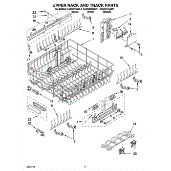 Parts for Kitchenaid KUDS01DJBL1: 09 - Upper Rack And Track Parts