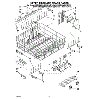 This genuine replacement part is an upper dishrack. The upper dishrack is the top shelf of a dishwasher that holds plates, bowls, and utensils. Over time through continuous use, this upper rack may become damaged, making it difficult to secure dishes during a wash cycle. If the dishrack is visibly damaged or no longer opening and shutting properly, it will need to be replaced. Thankfully, replacing this dishrack is a relatively simple process.To remove the old dishrack, simply pull it out and lift the wheels from its track. Set it off the side, and lift the new dishrack. Slide it into its track and make sure it is locked in. If it is gliding in and out smoothly, it has been installed properly.This genuine replacement part is compatible with Whirlpool, Maytag, KitchenAid, Jenn-Air, Amana, Magic Chef, Admiral, Norge, Roper, and Sears/Kenmore brand dishwashers.