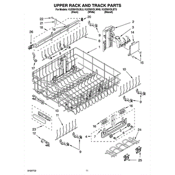 Parts for Kitchenaid KUDS01DLBL0: 09 - Upper Rack And Track Parts