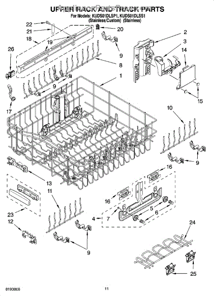 This genuine replacement part is an upper dishrack. The upper dishrack is the top shelf of a dishwasher that holds plates, bowls, and utensils. Over time through continuous use, this upper rack may become damaged, making it difficult to secure dishes during a wash cycle. If the dishrack is visibly damaged or no longer opening and shutting properly, it will need to be replaced. Thankfully, replacing this dishrack is a relatively simple process.To remove the old dishrack, simply pull it out and lift the wheels from its track. Set it off the side, and lift the new dishrack. Slide it into its track and make sure it is locked in. If it is gliding in and out smoothly, it has been installed properly.This genuine replacement part is compatible with Whirlpool, Maytag, KitchenAid, Jenn-Air, Amana, Magic Chef, Admiral, Norge, Roper, and Sears/Kenmore brand dishwashers.