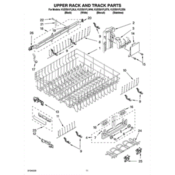 Parts for Kitchenaid KUDS01FLBL6: 09 - Upper Rack And Track Parts