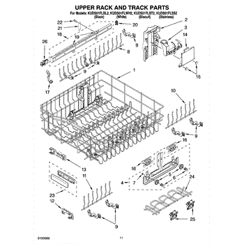 This genuine replacement part is an upper dishrack. The upper dishrack is the top shelf of a dishwasher that holds plates, bowls, and utensils. Over time through continuous use, this upper rack may become damaged, making it difficult to secure dishes during a wash cycle. If the dishrack is visibly damaged or no longer opening and shutting properly, it will need to be replaced. Thankfully, replacing this dishrack is a relatively simple process.To remove the old dishrack, simply pull it out and lift the wheels from its track. Set it off the side, and lift the new dishrack. Slide it into its track and make sure it is locked in. If it is gliding in and out smoothly, it has been installed properly.This genuine replacement part is compatible with Whirlpool, Maytag, KitchenAid, Jenn-Air, Amana, Magic Chef, Admiral, Norge, Roper, and Sears/Kenmore brand dishwashers.